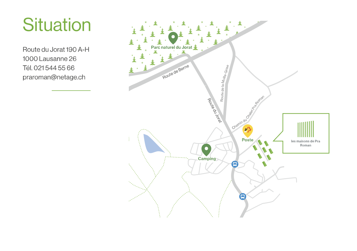 Situées en périphérie de Lausanne, les Maisons de Pra Roman offrent un équilibre parfait entre calme et proximité urbaine.